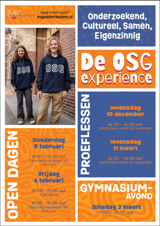 Ook dit jaar organiseert OSG West-Friesland weer diverse kennismakingsmomenten voor